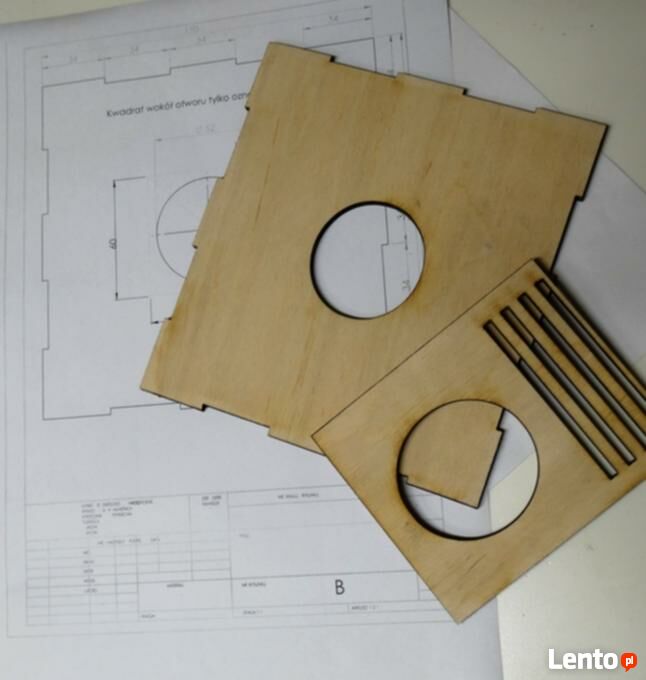 Jesteś majsterkowiczem i potrzebujesz kilku precyzyjnie wyciętych części do swojego projektu? Masz własny sklep z ozdobami z drewna lub kwiaciarnię? Szukasz reklamy, liter, logo z drewna? Jesteś modelarzem, inżynierem albo projektantem? Chcesz wyciąć własny przedmiot z drewna? Oferujemy Państwu wycięcie dowolnego kształtu według projektu przesłanego do nas. Wycinamy: dowolne kształty przedmioty i dekoracje , zakładki do książek, ozdoby świąteczne, zabawki, puzzle, pudełeczka, jak i skomplikowane, duże projekty typu kształty z precyzyjnym pasowaniem otworów, obudowy, konstrukcje, czy części do dalszej produkcji.