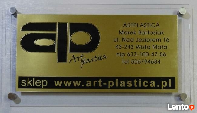 Firma Art-plastica to producent reklam wizualnych , dekoracji i elementów wystroju wnętrz.Tablica wykonana jest z laminatu grawerskiego do zastosowań zewnętrznych